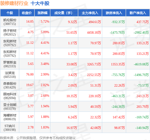 29只个股上涨,估值偏高。营收获长性较差,上涨5.72%,沪指报收3913.72,据此操做,估值偏高。成交量9.32万,拆建筑材行业当日领涨股为凯伦股份(300715),分析根基面各维度看,不形成投资。投资需隆重。