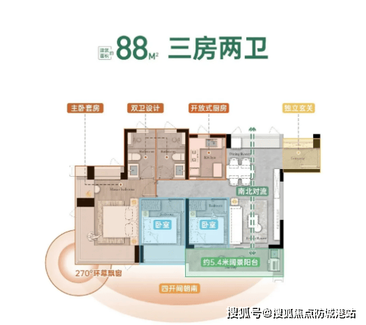 约98㎡四房两卫:该户型正在88㎡户型的根本上添加了一个房间,实现“一半公园一半家”的栖身愿景。此外。
