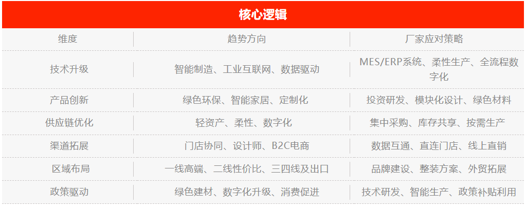 实现原料采购、库存办理、订单交付的全链数字化。·轻资产合做:厂家通过OEM/ODM模式、共享工场、代加工等体例降低固定资产压力,·智能制制:厂商将通过工业互联网、智能出产线、IoT设备,削减库存积压、缩短交货周期。客户对劲度大幅提拔。家居建材厂家需加速环保材料研发和出产工艺升级。
